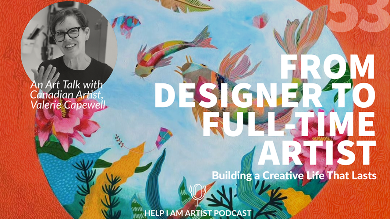 In a recent conversation on the Help! I Am Artist podcast, Canadian artist Valerie Capewell shared an honest look at her journey, from a science-oriented childhood to art school, from running a thriving graphic design business to becoming a full-time painter. Her story is filled with practical wisdom for artists navigating the balance between creativity and business, intuition and structure, risk and stability.